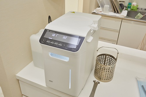 当院は、来院していただくみなさんを「大切な家族」だと思い、安心・安全な治療を受けていただきたいという思いから、消毒・滅菌をはじめとする院内感染予防に力を入れています。患者さんのお口に一度入った器具は、院内感染の経路を断つために、患者さんごとに消毒・滅菌、または可能な限りのディスポーザブル(使い捨て)製品を利用しています。
